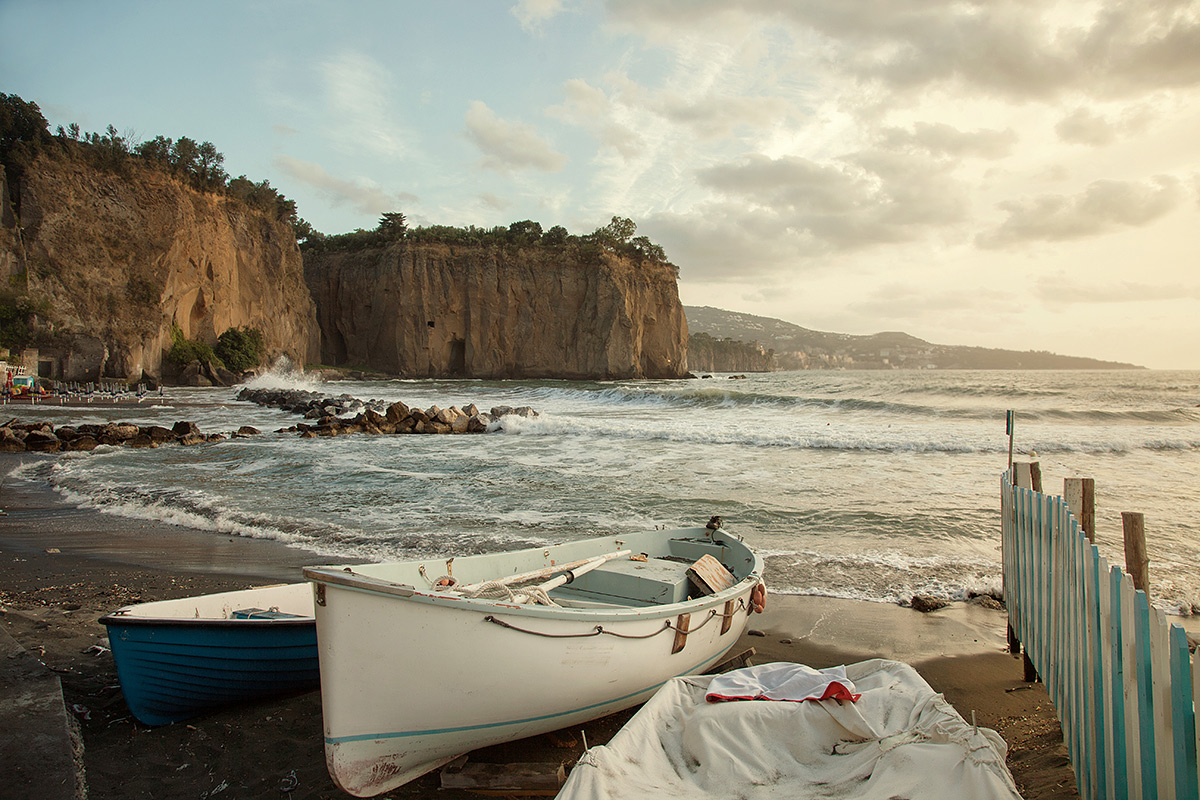 La sosta serena a terra , in un momento di riposo, godendo il respiro del mare e la luce dorata, attendendo la calma futura del mare...