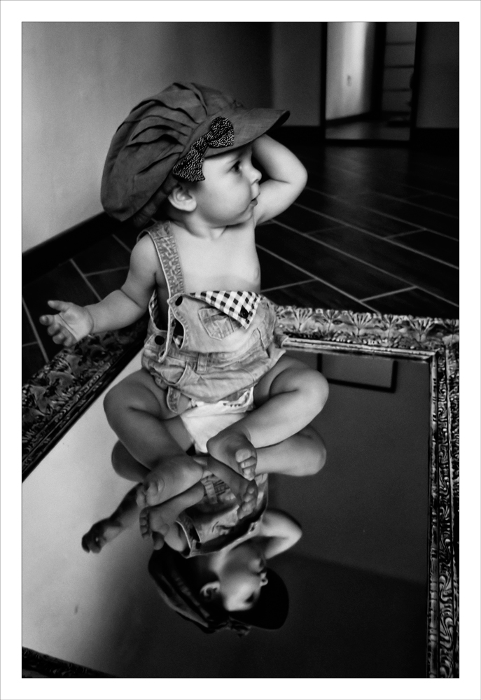 Molto bene questo delizioso monellino con il berretto più grande di lui!