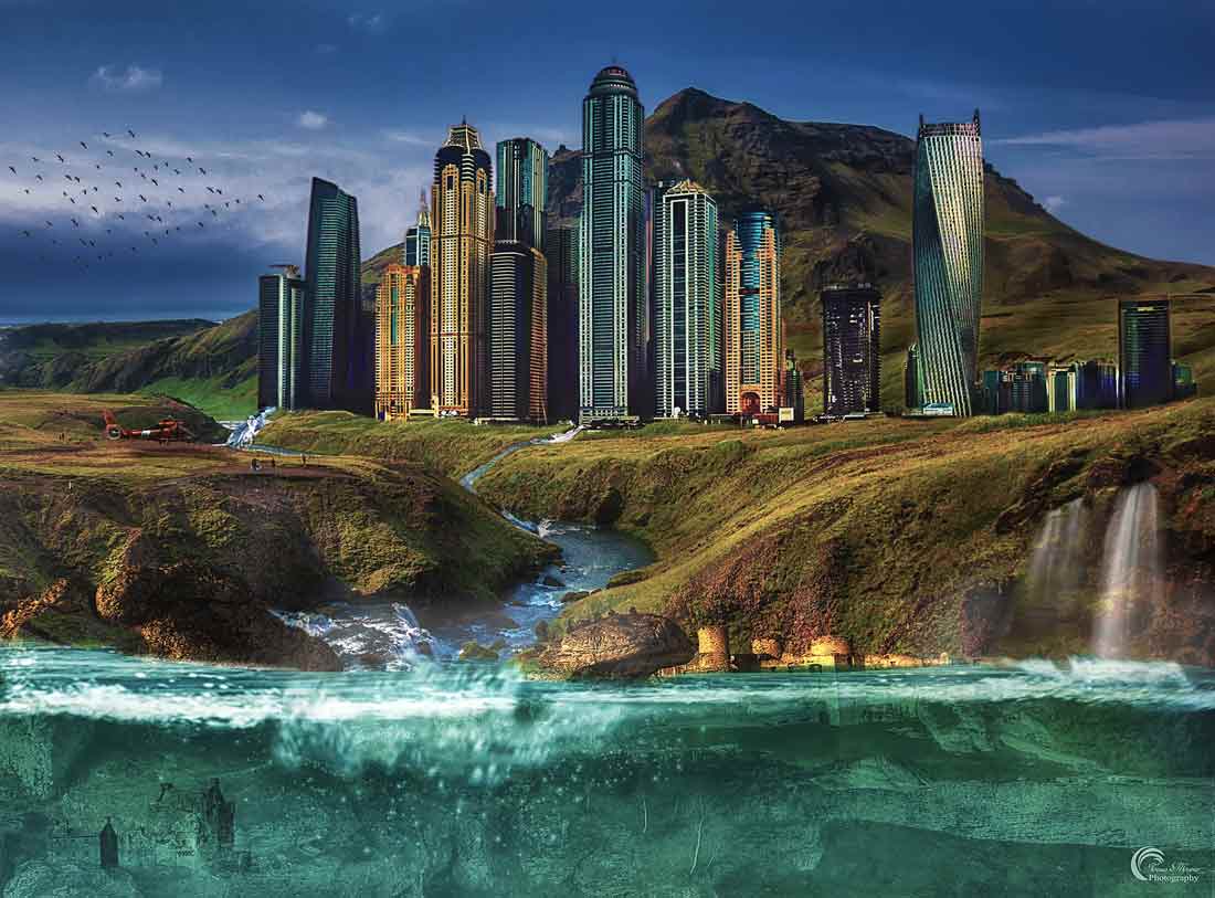 Mi ricorda immagini raffiguranti scenari Sci-Fi anni 50/60, buona. Ok!