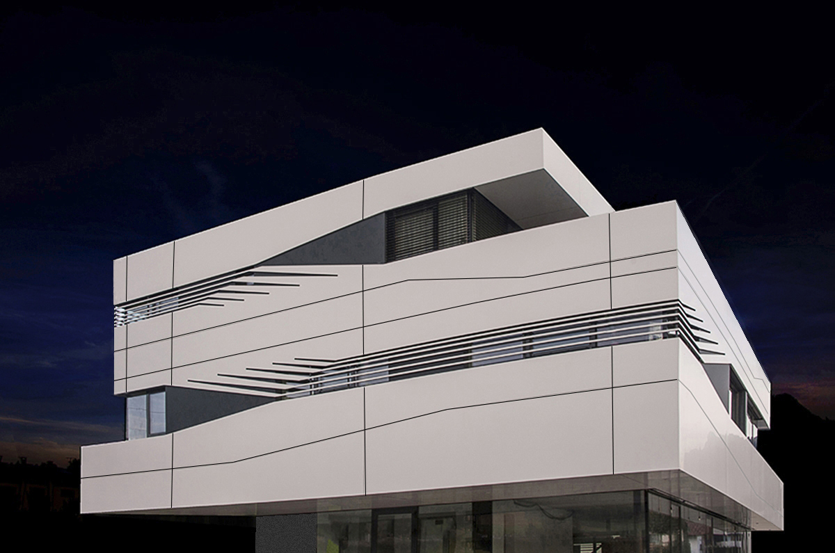 Mi piace molto questa proposta architettonica, con la volumetria della costruzione che regna incontrastata nel bianco, contro un cielo blu cobalto di rara densità. Forse la base ad alte vetrate, con la sua trasparenza, ovviamente, e la sua realtà più "normale"... ,con cui chiudi in basso, ed è la sola cosa per cui anch'io nutro qualche perplessità. Ma d'altra parte tu solo potevi decidere come inquadrare la struttura che avevi davanti agli occhi.