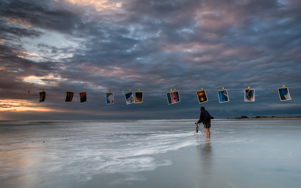 Il filo era corto,il meteo non coincideva volava tutto e sono scivolato...Nelle foto successive,mi sono aggiustato di nuovo, e c'è piu proporzione,la luce è diversa, le immagini sembrano bandierine.Insistevo con i tempi lunghi,mi piaceva l'effetto, ma il vento era aumentato.Ho dovuto arrendermi e limitare i danni.