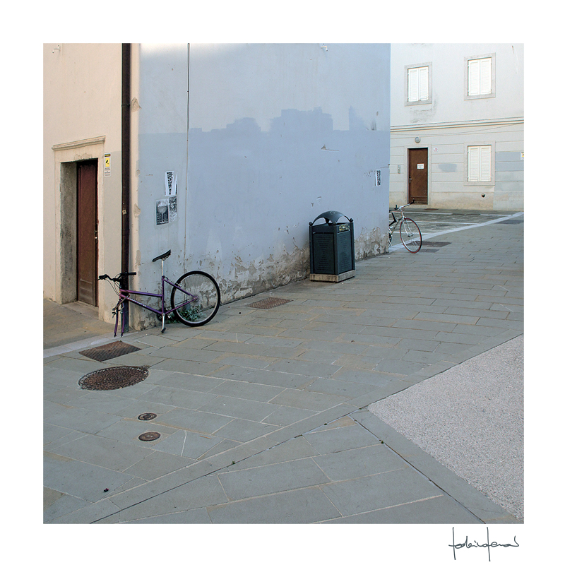 Allora, ti dico che me la metto nelle preferite questa . Per taglio, per precisione nelle chiusure, per grande occhio fotografico ( la ruota della bici che manca davanti e la sola ruota della bici a completamento di questa posizionata in alto .