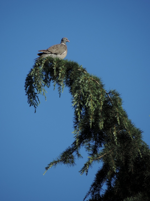 Una tortora si riposa sul pino che c'è davanti a casa mia