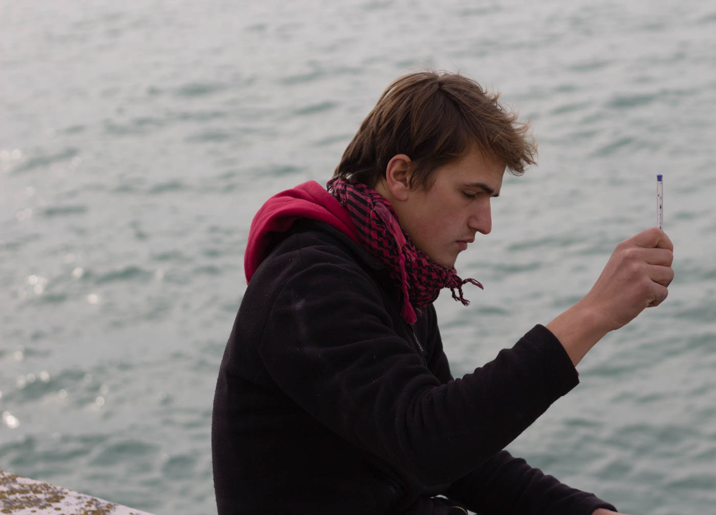 Ero a Venezia e stavo andando da San Marco verso l'Arsenale per la Biennale, quando facendo un ponte ho trovato questo ragazzo che stava fissando e buttando giù qualche schizzo; probabilmente stava guardando l'architettura di qualche palazzo o cose del genere. Gli ho scattato un paio di foto in maniera molto discreta e senza fermarmi lungo per non disturbarlo troppo visto che mi sembrava molto concentrato su quello che stava facendo
