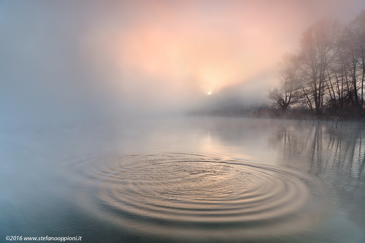 Data la pulita lucentezza della scena, proprio nel centro nevralgico della foto, con quei cerchi deliziosi che si allargano quasi davanti ai nostri occhi, potrei pensare che in parte , concentricamente ai lati, hai forse ammorbidito un poco la resa nebbiosa pur reale del contesto, ma il risultato, in ogni caso, è davvero molto piacevole, e se così fosse, non esce dalla naturalezza e verosimiglianza.