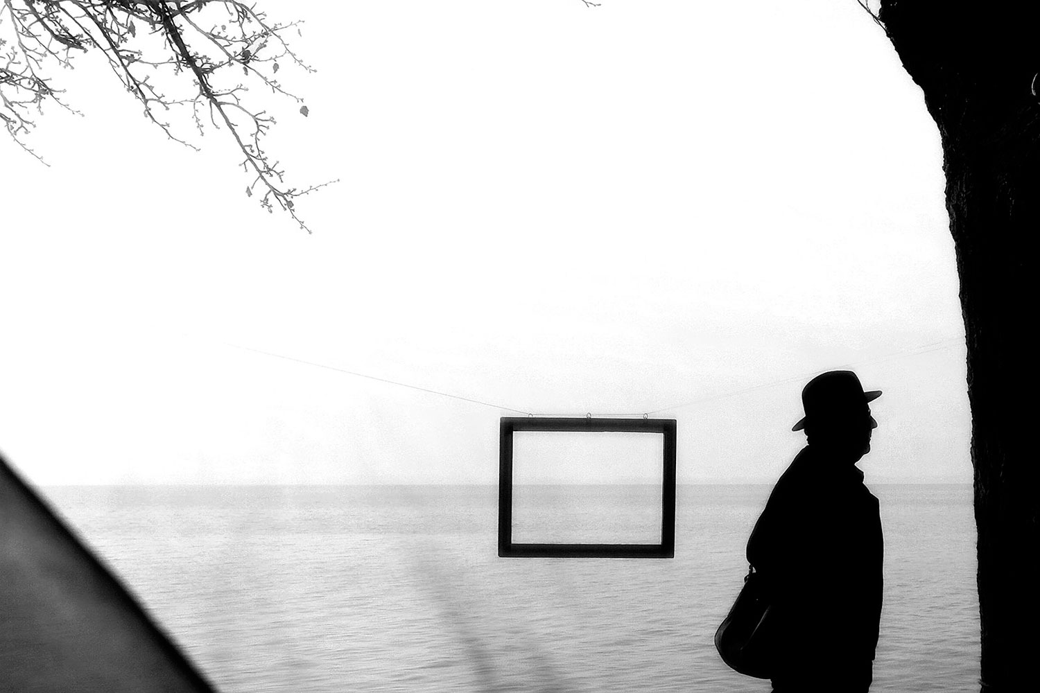 Una cornice sospesa, dentro un'altra cornice, nella quale passa la silhouette del Sig. Giano.