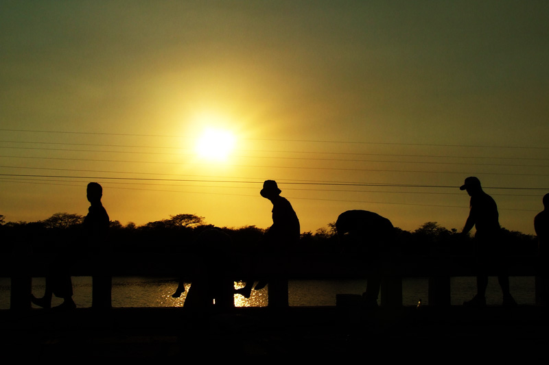 Direte: ma dove sono le canne da pesca??? Beh, questi simpatici ragazzi stavano pescano dal bordo di un ponte armati di solo filo e amo... niente canna.