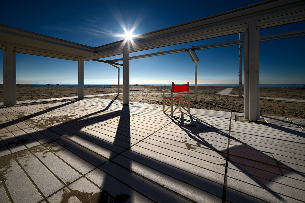 grazie AarnMunro. Non ho voluto tagliare l'ombra della sedia. La lente è il Smyang 14mm 2.8 montato su Sony Alpha 7R. Immagine nitidissima, si vedono i granelli di sabbia.