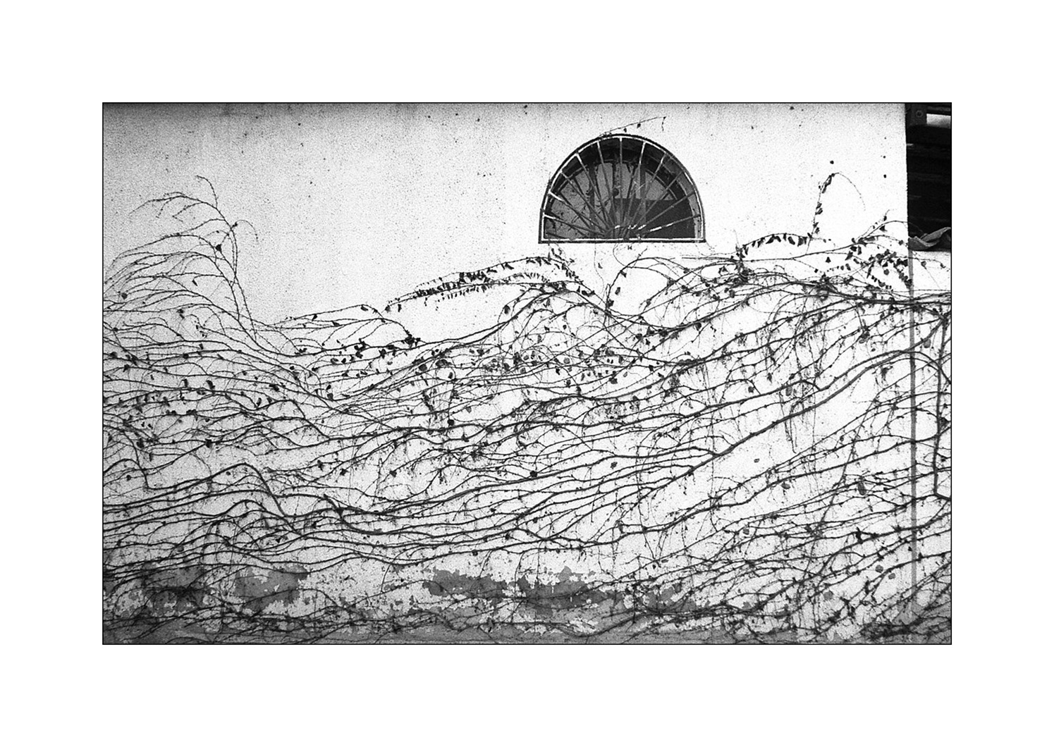 mi piace l'assonanza della convessità della finestrella ripetuta tante e tante volte nelle anse del rampicante! Una foto quindi che da rappresentativa diventa concettuale;