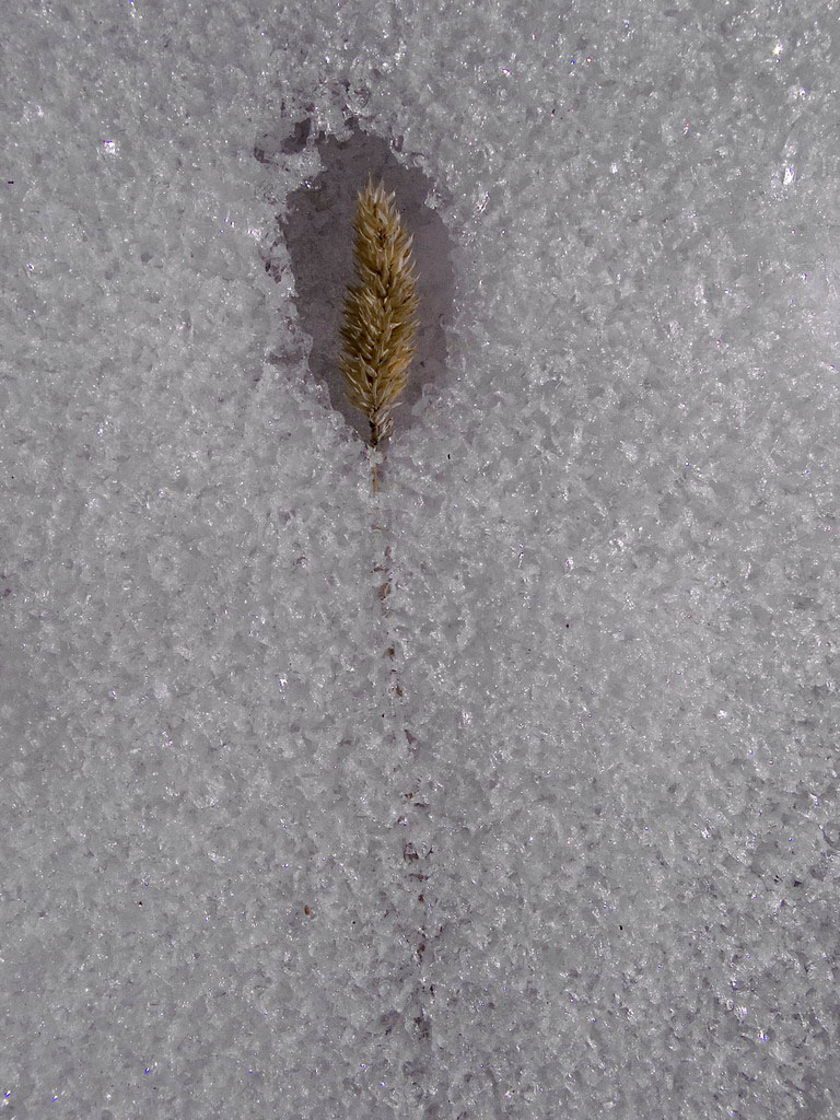E' una foto molto strana la tua, non mi sarebbe mai venuto in mente di fotografare una spiga nel ghiaccio; ti consiglio caldamente di rivedere le regole basilari della composizione (leggi la regola dei terzi): nella tua foto il soggetto (già statico di suo) non attira l'attenzione perché posto al centro.