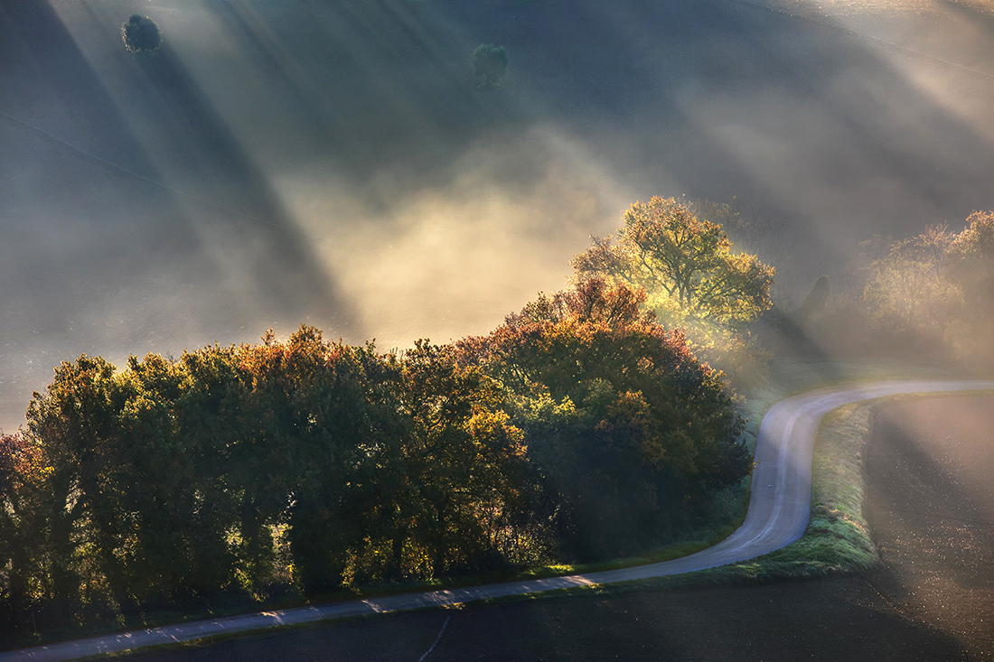 In ogni immagine che ci regali riesci a cogliere/rendere atmosfere fantastiche. Questa volta sono quei fasci di bellissima luce che entra nel frame inondando l'immagine di colori sfumature ed ombre. La leggera foschia completa la magia di questa foto.