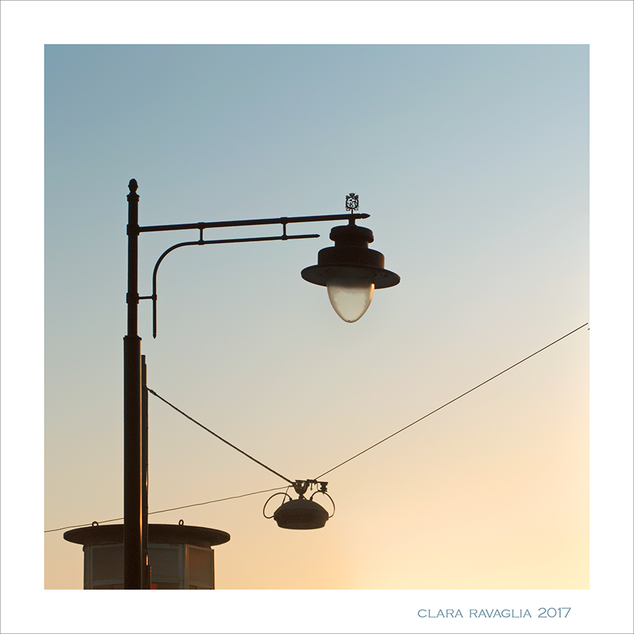 Interessanti geometrie scandite da un cielo che sembra dipinto con i pastelli. I cavi sembrano quasi dividere le cromie fredde dalle calde.