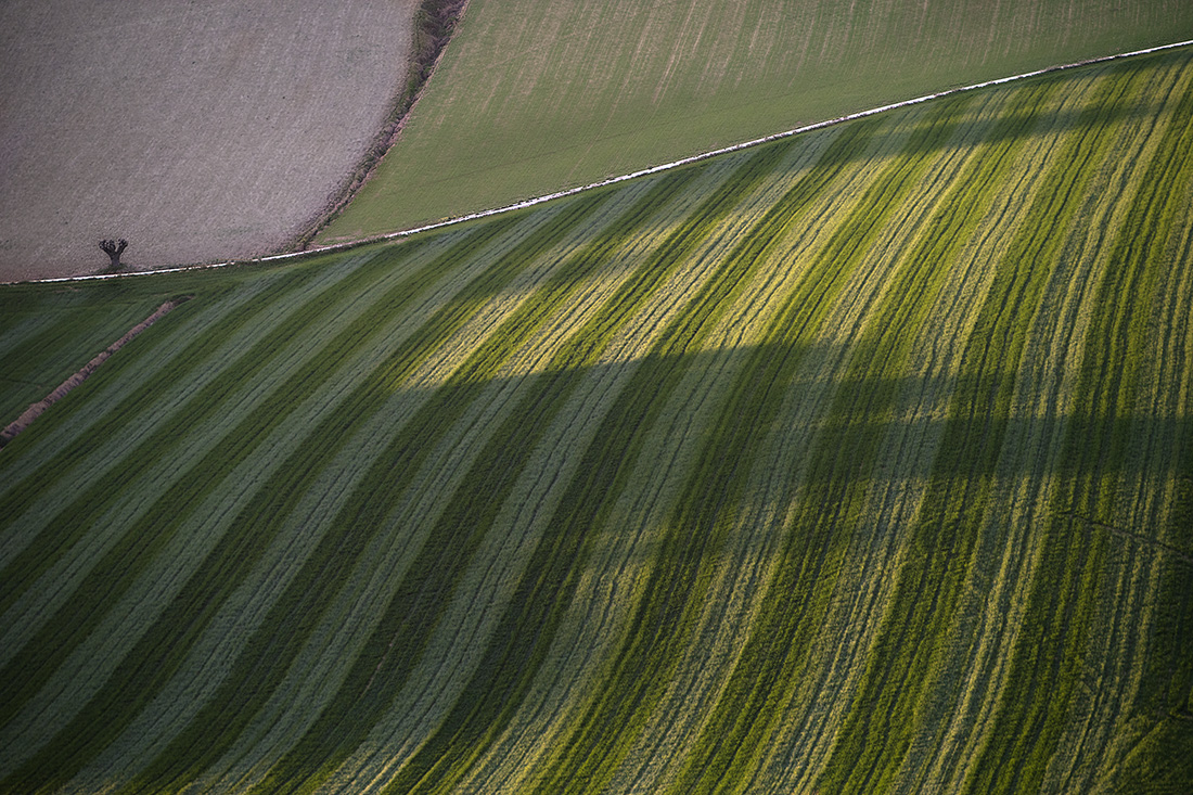 Una bella luce che accarezza i campi quasi pettinati, talmente son precisi.
