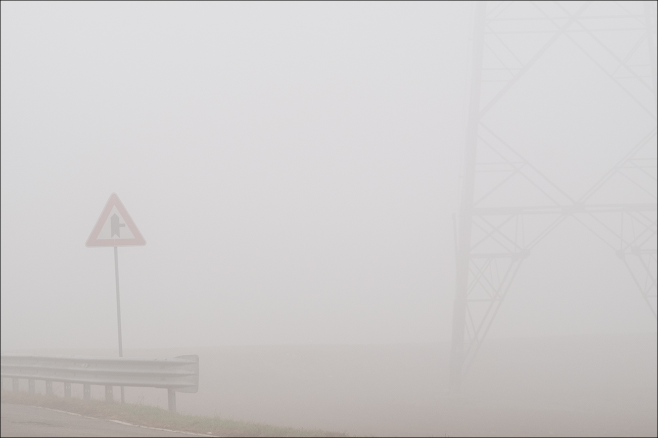 Tralicci, cartelli stradali e nebbia. Si, elementi ben noti ad un padano.