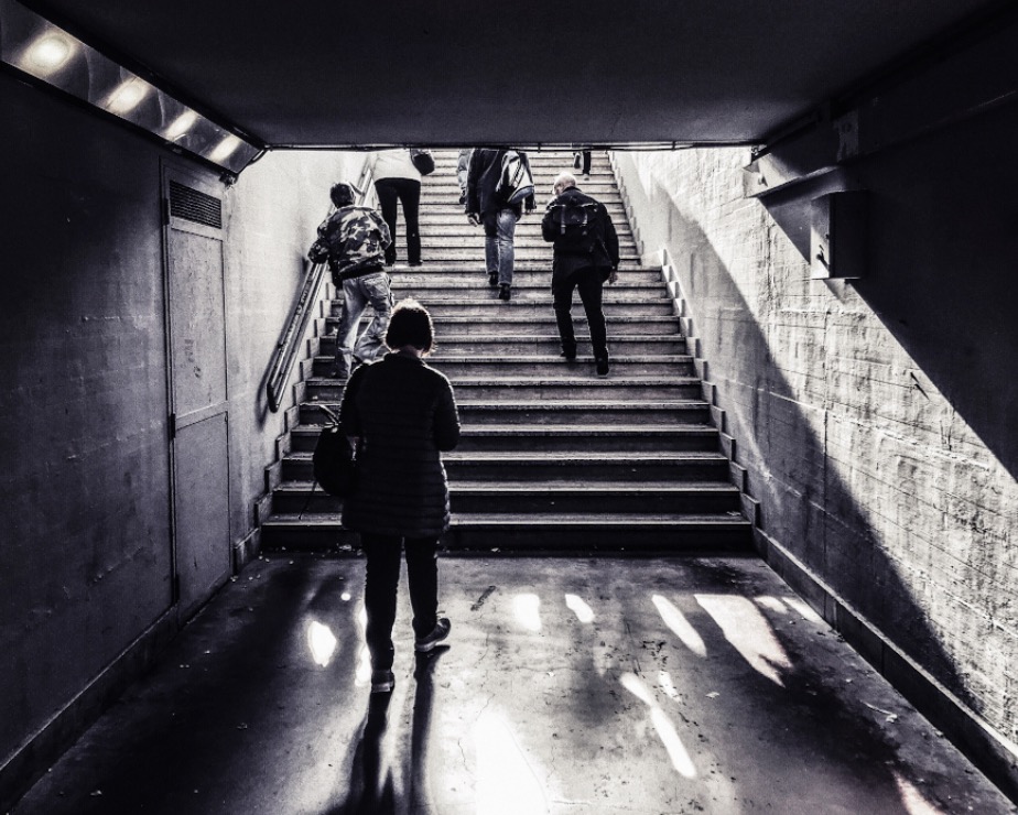 piu' che street la vedrei meglio in varie, lo scatto e' ottimo a mio modesto avviso, in particolare il gioco d'ombre che si ha in basso. Un controluce ben gestito con una composizione ottima che nonostante una rigorosa inquadratura alla ricerca della simmetria mantiene anche la spontaneita' e naturalezza dei passanti che completano la scena.