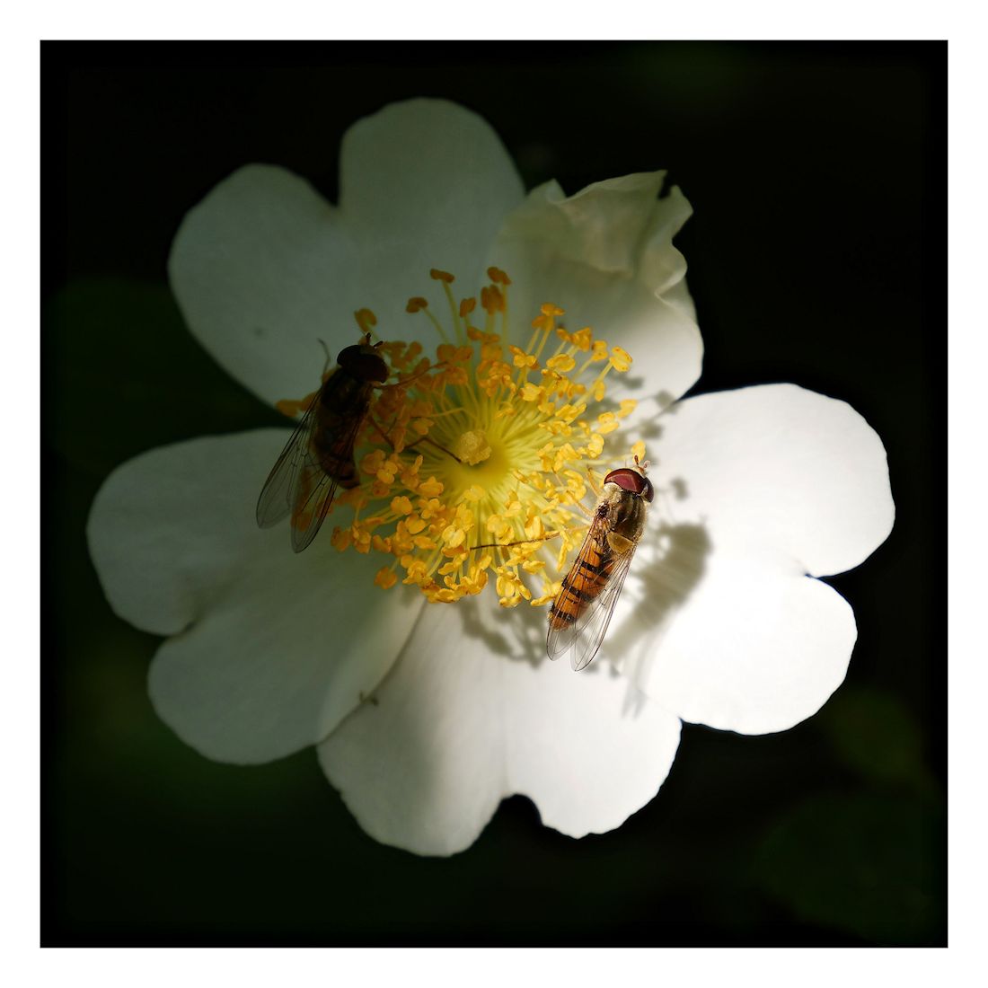 mi piaceva questo taglio obliquo tra chiaro e scuro, fuco e sfuocato che divide quasi in modo speculare il fiore mostrando due diverse visioni in contemporanea... e non solo; anche le due api si trovano rispettivamente nelle due zone in posizione quasi speculare ....una specie di yin e yang della natura.  _________________ P.R. |