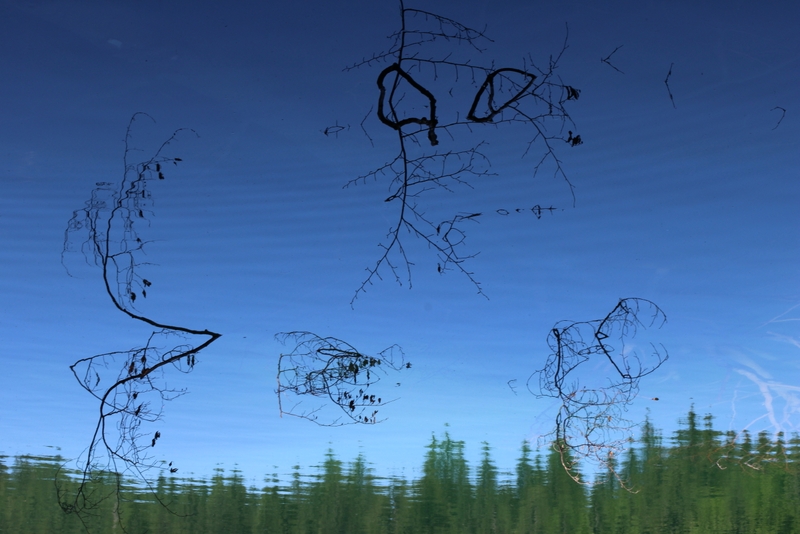 Un incontro fra tremolii reali di onde riprodotte in acqua e vibrazioni verdi di chiome nel riflesso. Mi piace.
