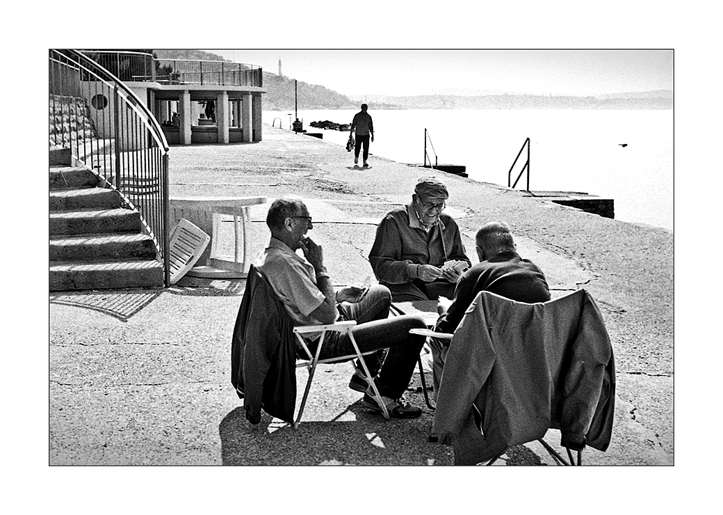 È proprio bella, questa immagine! La composizione, la scena, le espressioni dei giocatori di carte, il B/N...