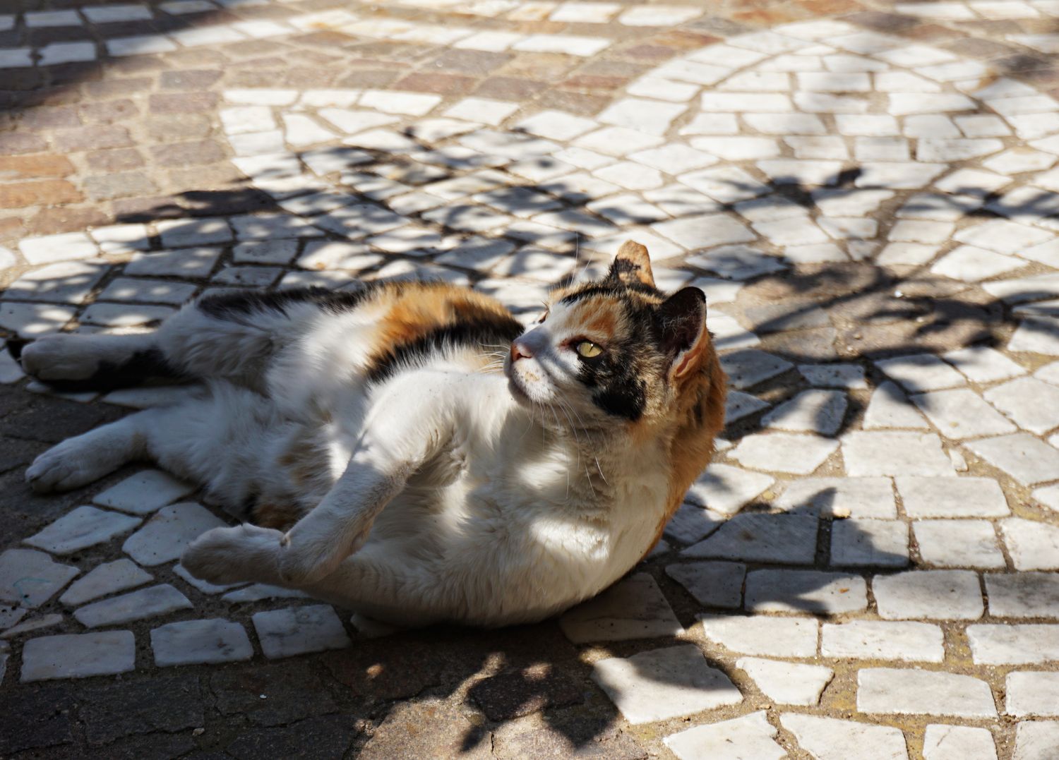 Magari non da manuale, ma proprio simpatico questo scatto. Nonostante la abbondanza di contrasti di luce e di alternanza di ombre con le parti colpite dal sole, la scena è comunque ben leggibile ed esposta. La gatta ci prova a mimetizzarsi con il contesto, ma non ha successo ... eheh e noi ammiriamo la sua evoluzione sorniona quasi a pancia in sù. Hai un feeling con i felini speciale!