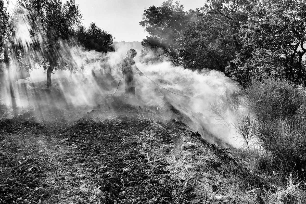 Una gran bella foto,sia dal punto della realizzazione che dalla resa emotiva.La mente subito corre verso i tantissimi episodi di questa estate in cui queste scene sono state sin troppo diffuse e reali,in tante parti d'Italia.L'effetto del fumo e dei raggi sulla figura umana,insieme alla buona conversione in bn danno alla scena la giusta drammaticità ,dando però un valore quasi etereo all'uomo e al suo lavoro. Mi piace molto bravo  _________________