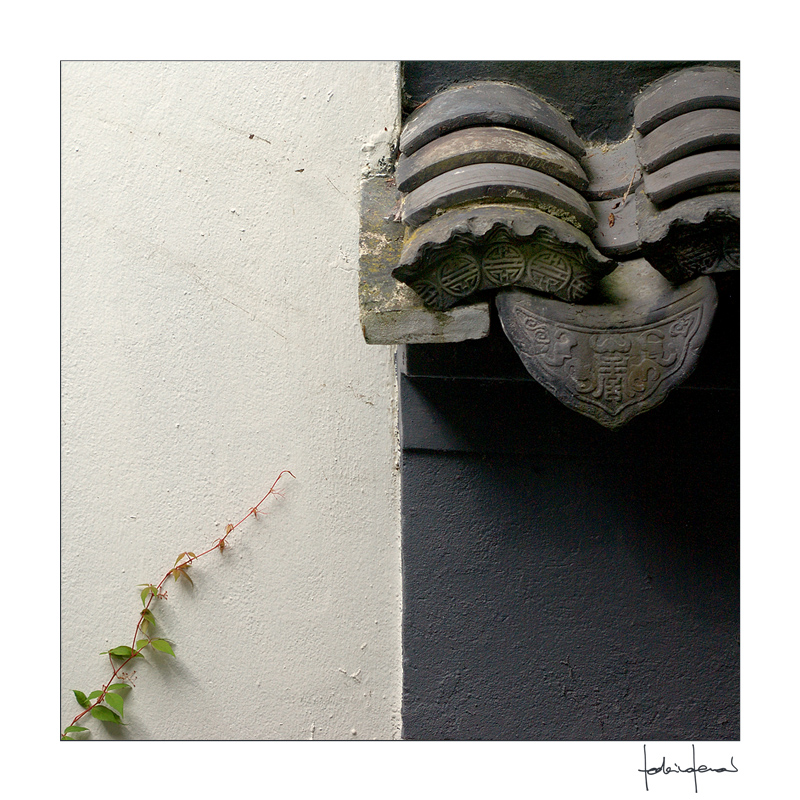 Hum qualcosa impediva di riprendere l'elemento architettonico per intero immagino. La scena mi piace. Una piacevole suddivisione del frame tra scuro col suo grave fregio e chiaro con la delicatezza di quel ramoscello.