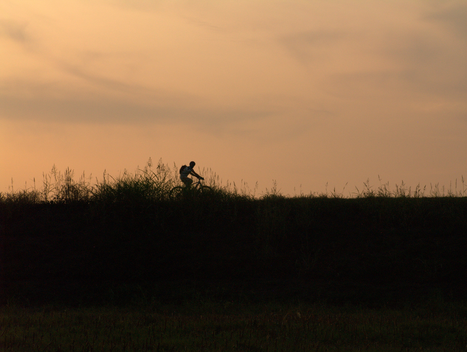La foto nell'insieme appare sottoesposta e poco nitida sul ciclista. In questo caso credo che l'AF della macchina fotografica sia stato ingannato dagli steli d'erba ed abbia fatto ricadere la MAF in quel punto. Come la vedresti con un bel B/N deciso?