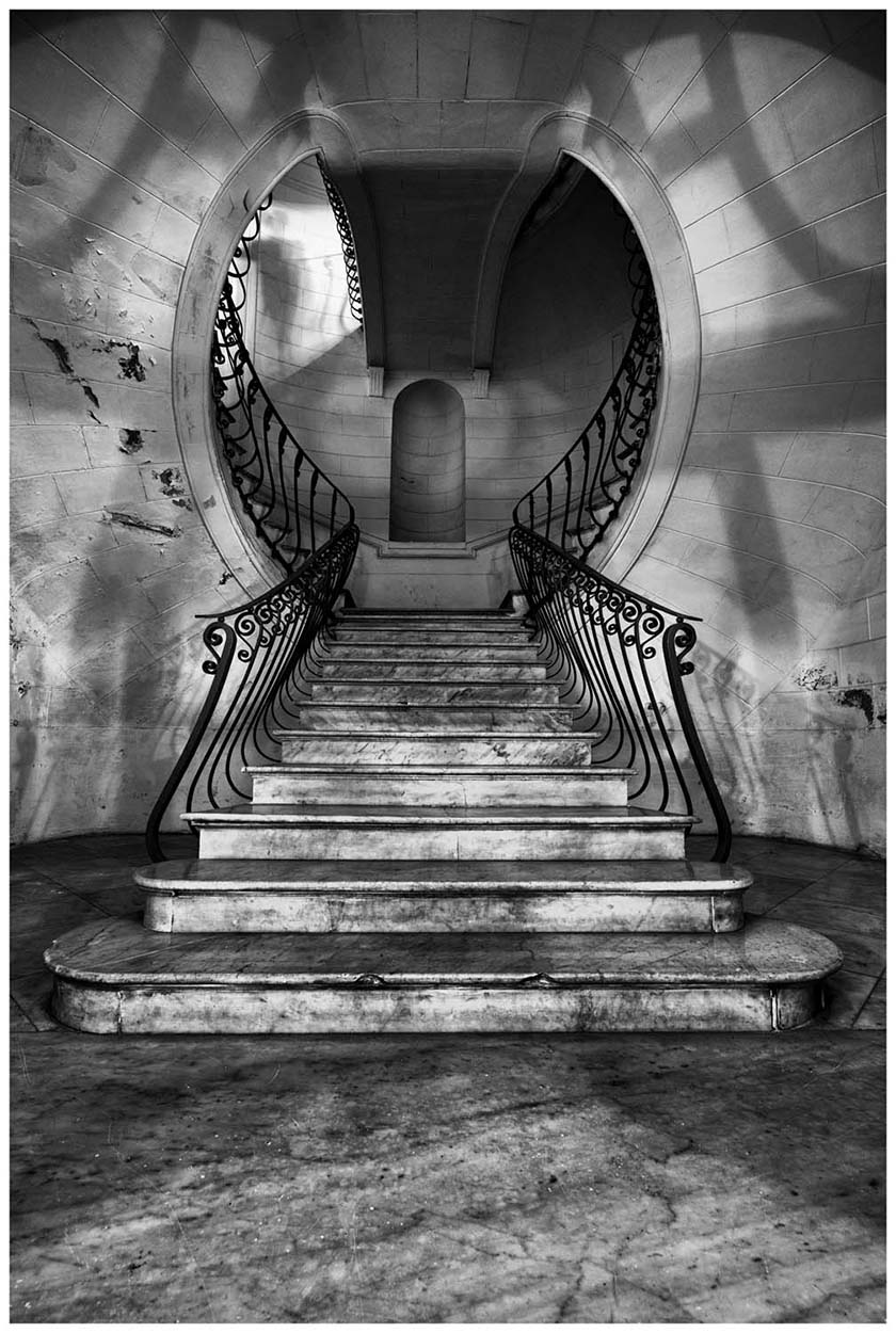 Una foto che mi piace moltissimo, oltre all'aspetto architettonico di pregio e' la luce e le bellissime ombre proiettate sui muri a lato che integrano e completano questa bellissima e particolare scalinata.