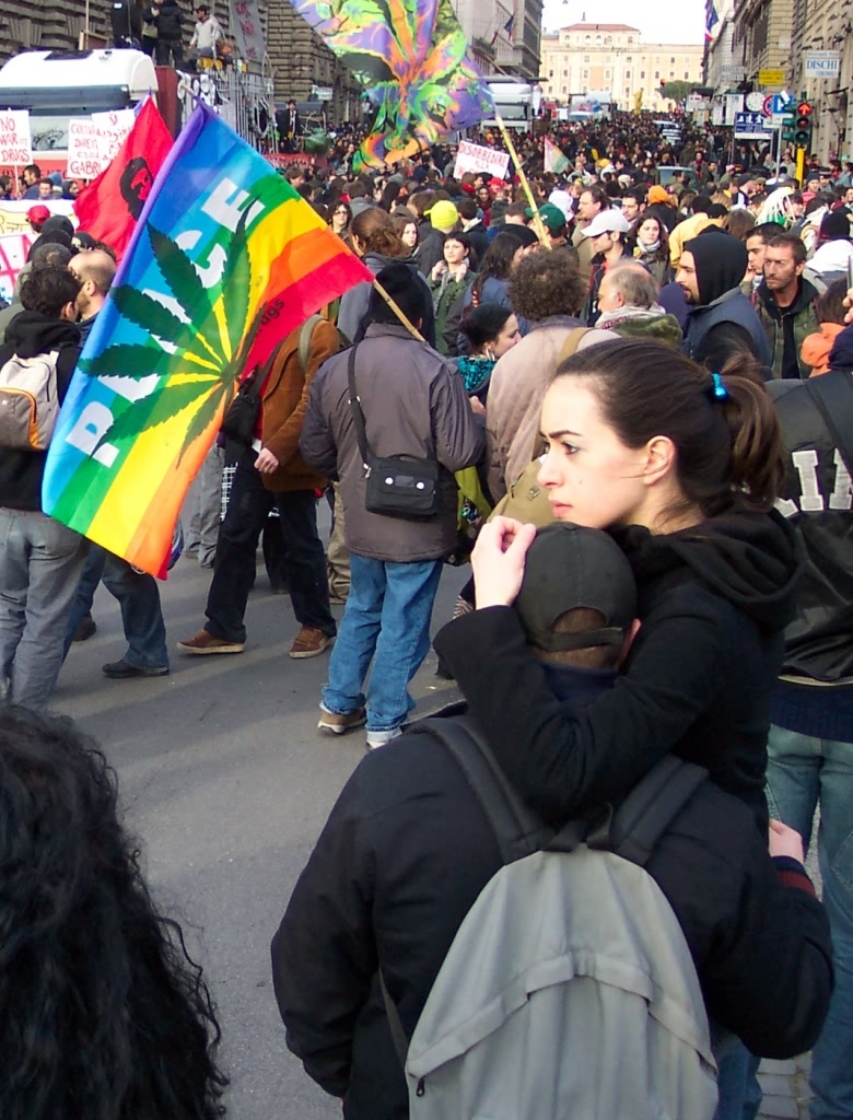 non sono un esperto e questa è solo una mia sensazione... mi sono permesso di modificare la foto perché mi ha colpito molto la delicatezza e il silenzio dei ragazzi abbracciati contro il rumore della manifestazione...