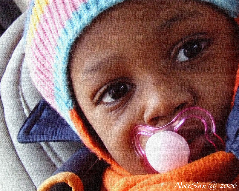 Mi piace molto, la bambina è incantevole, molto belli i colori ed il taglio ma l'effetto texture non mi piace affatto. Sembra tu abbia fotografato un cuscino con sopra stampata la faccina della bambina