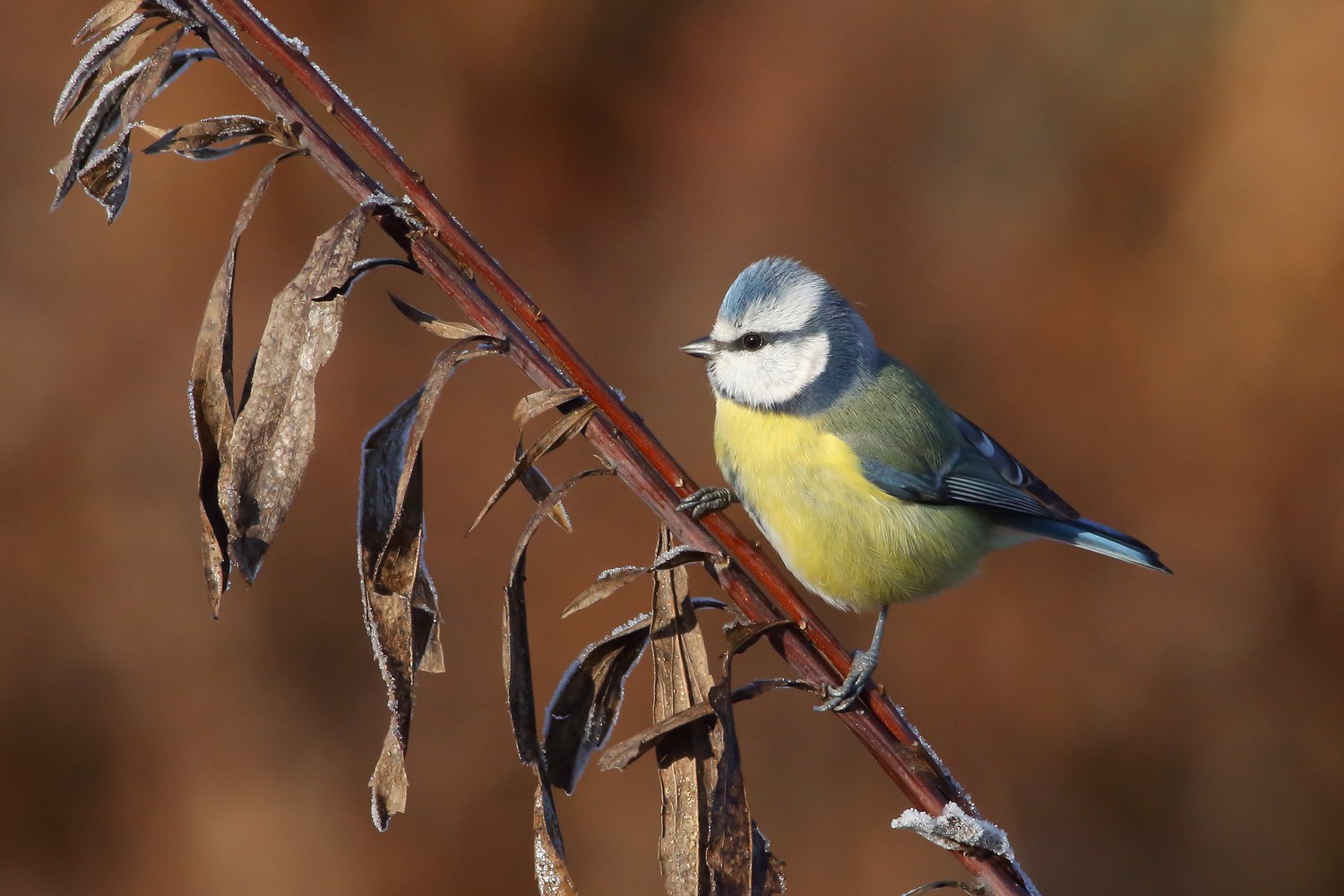 mi piace per soggetto ben ripreso, posatoio, composizione, luce e sfondo...d'effetto anche i cristalli di ghiaccio