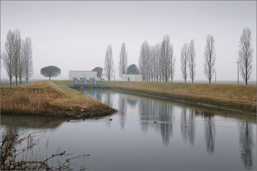 Bella, molto bella per come illustra e racconta un’opera idraulica rilevante e del territorio. Bella bei toni spenti della stagione. Bella nel come composta dal partire a sx con l’arbusto al bel filare fino la in fondo al soggetto.