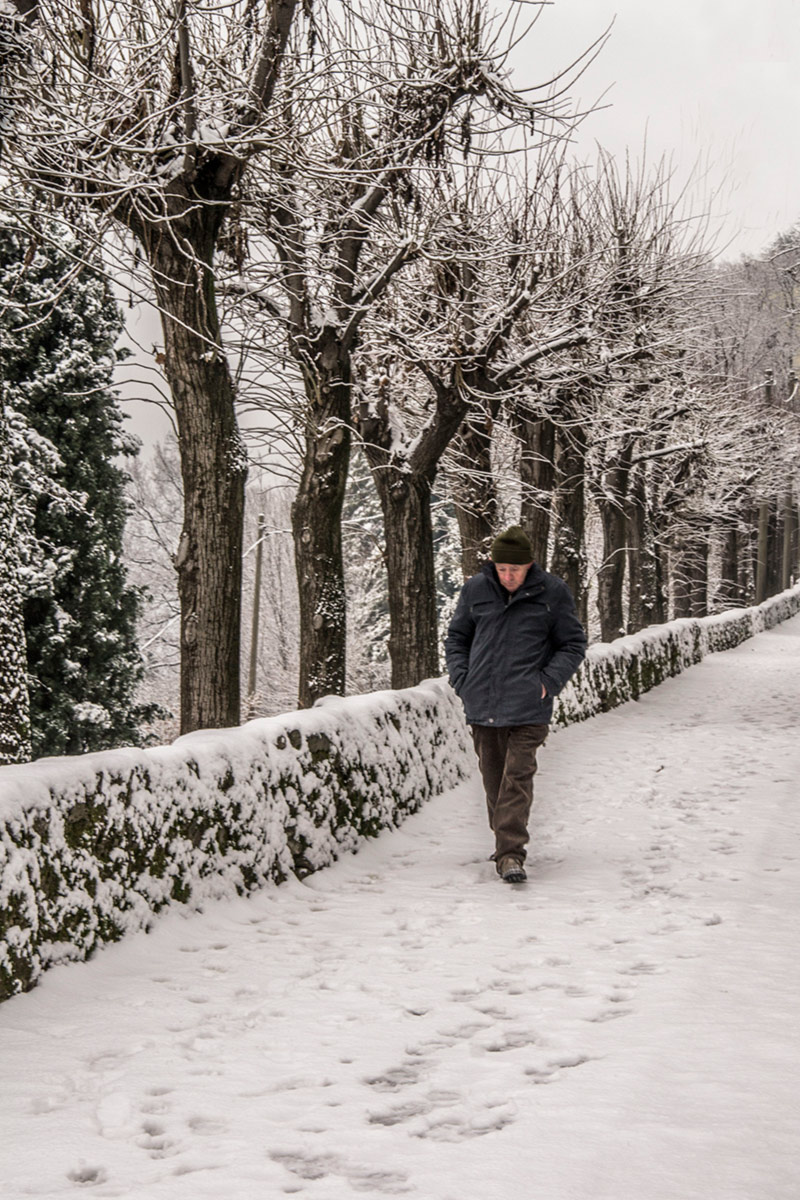 Foto molto suggestiva; mi viene subito di accostare gli inverni che sono rappresentati: quello della stagione dell'anno e quello della vita, data l'età della figura umana.