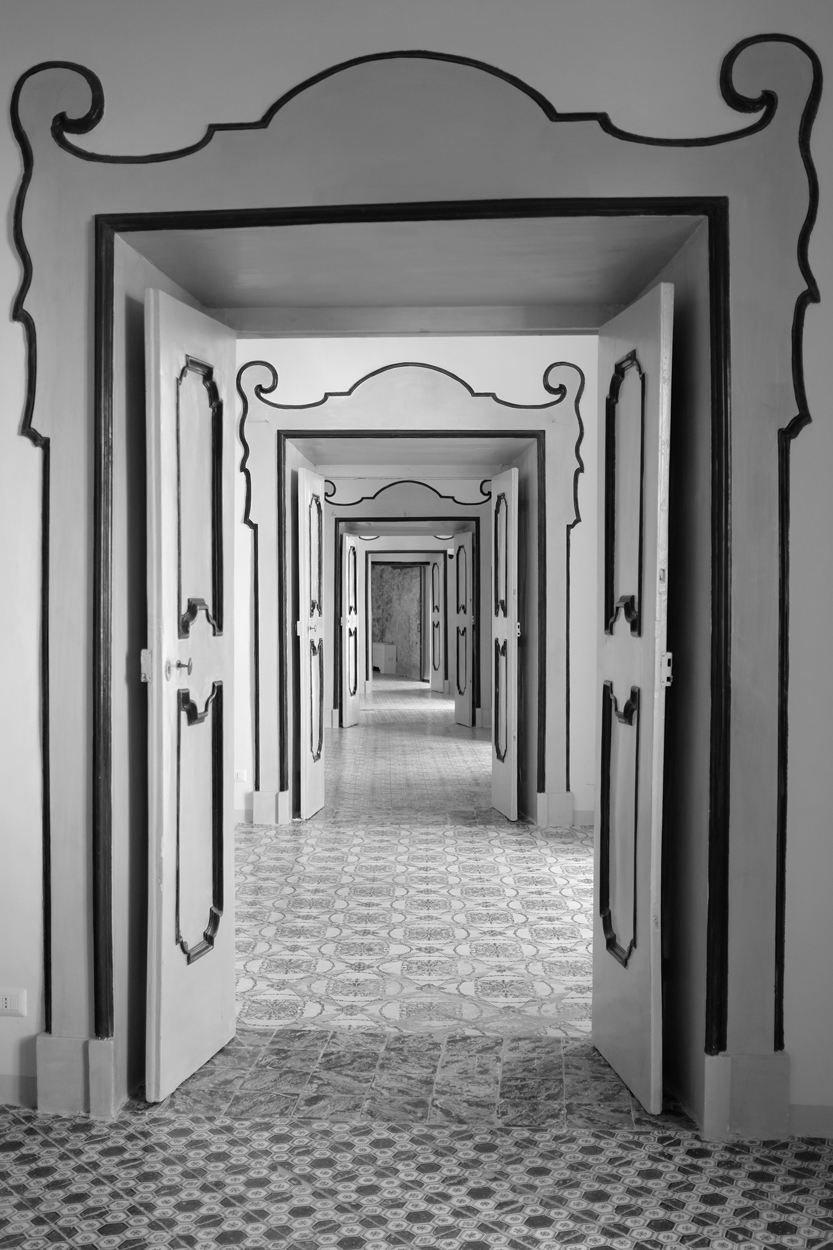 Grazie a tutti per le visite ed i commenti. In realtà, come potete notare osservando il pavimento, il corridoio è curvo (verso sx), la qual cosa rende impossibile allineare perfettamente le porte, purtroppo o per fortuna...