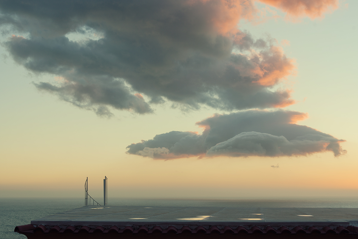 Un dialogo silenzioso fra le grandi nuvole rosate e base area su tetto di questa scaletta a chiocciola che vorrebbe condurci oltre....