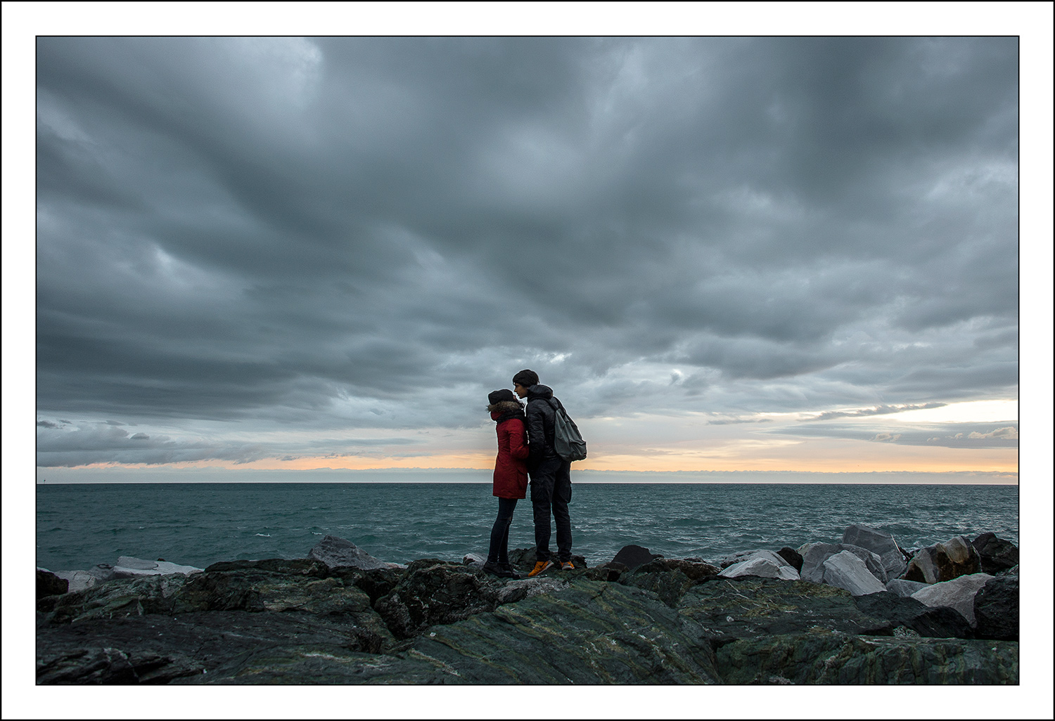 La coppia che si sostituisce all'elemento principe dell'alba/tramonto, soggetto di molte foto con il mare, in questa sono proprio loro, soprattutto in questa ricorrenza, il 14 febbraio, che prendono la posizione principale di questa visione. A far da contraltare pero' le incombenti nuvole minacciose, ma entrambi troppo assorti per potersene preoccupare. _________________ Nikon D810 /// D500 /// D90 /// D7800 /// F401