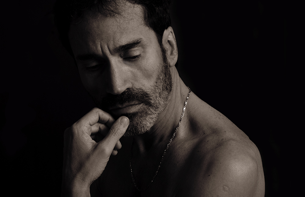 Riflessivo, pensieroso e misterioso.Volto che cerca di emergere dal buio di oscuri pensieri.. Non semplice mettersi in gioco così in prima persona,per cui bravo!Credo avrei tolto la catenina sai?La pelle scoperta da sola da un senso di intimità che il luccichio mi sembra interrompa,parere mio ovviamente