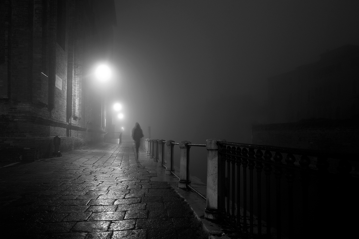 La prima impressione guardando questa foto è stata di andare al famoso brano di Modugno che descrive così bene questa atmosfera sospesa e silenziosa e pazienza se quello raffigurato non è un uomo in frack.