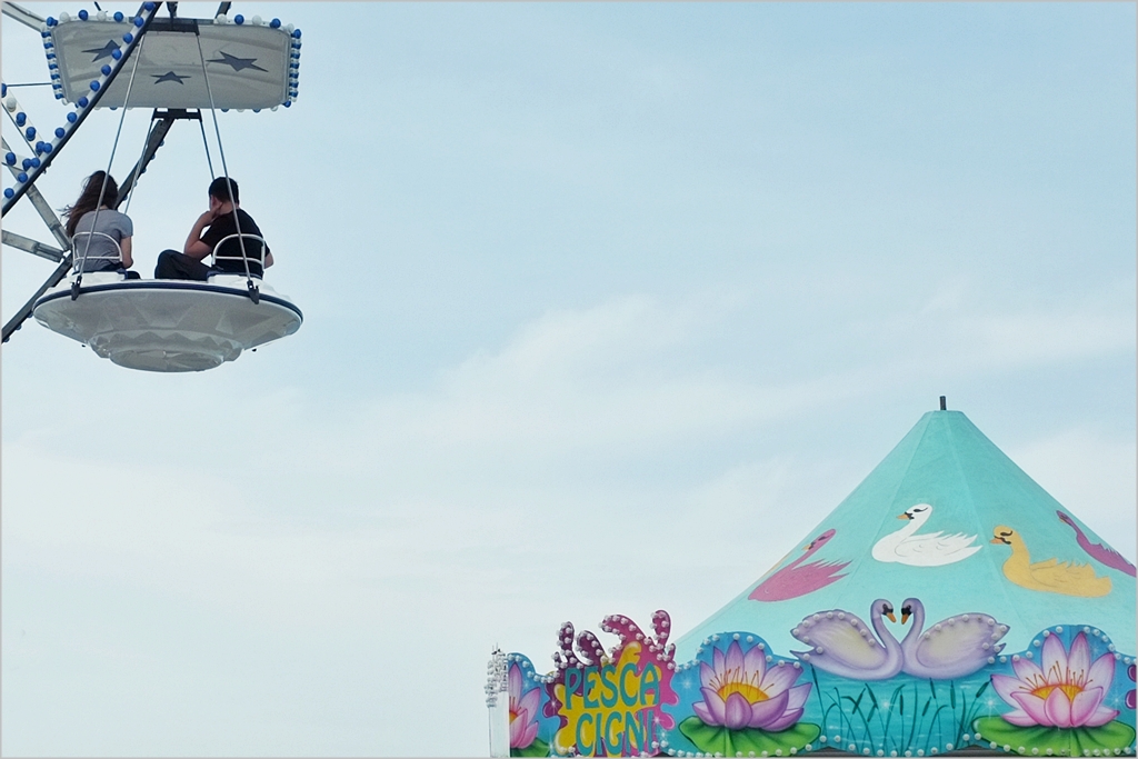 Io ci vedo un'anima street in questo scatto dove i cigni innamorati che con la testa ed il collo formano un cuore in basso fanno da contrapposizione ai due giovani in alto che sono distanti e freddi tra di loro, quasi ad ignorarsi . Molto bella  |
