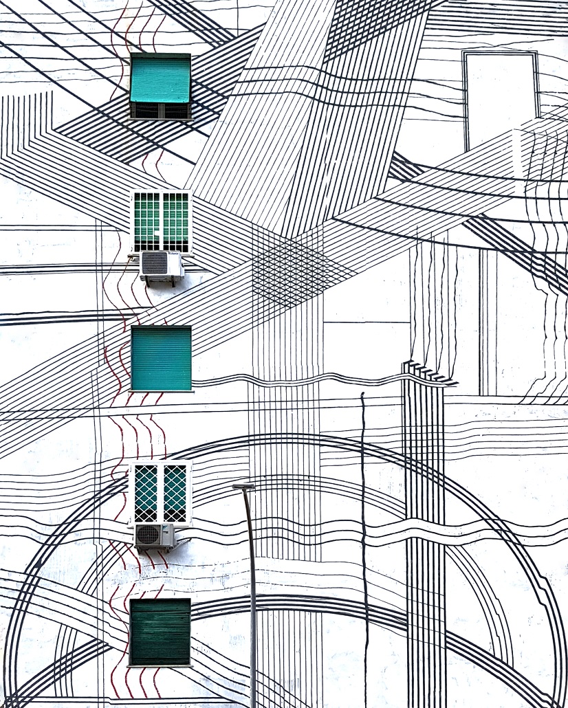 Ma dove hai scovato questa meraviglia, bellissimo i graffiti ed ottima la scelta di isolare l'opera dal resto. Le finestre con quel poco colore completano il tutto.