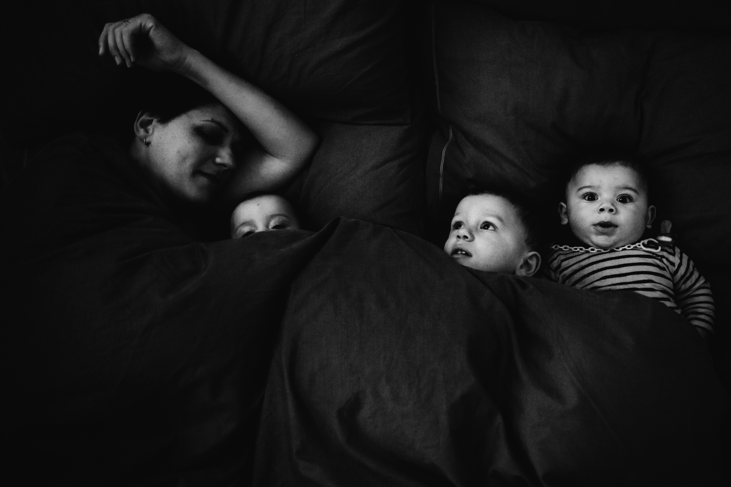 A parte ciò però la trovo permeata di un forte senso di umana serenità. Tre pargoli con visi furbetti e simpatici, tutti insieme nel lettone con la mamma!