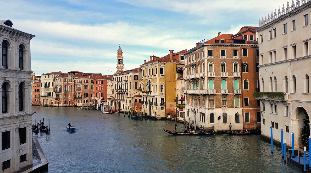 A destra invece si percepisce una paurosa pendenza verso il centro del frame, sembra che i palazzi cadano in acqua!