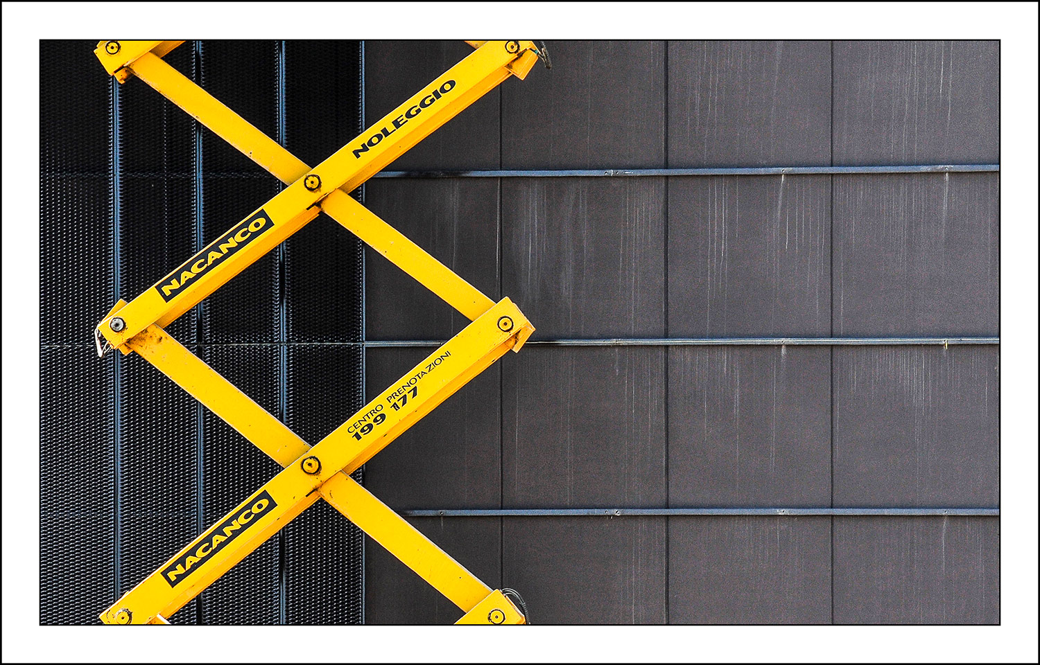Eccola l’ elica del DNA! Doppia X a srotolarsi ...Quel genoma che caratterizza ognuno di noi e che in te è composto ANCHE di luce, composizione e chi più ne ha più ne metta ...ma sopratutto di curioso osservare in ogni “anfratto” Visibile. Il giallo come il rosso uno dei più difficili da rendere, e non riesco a pensare ora ( da donna ci bado molto ) ad un abbinamento più elegante di questo col grigio ferro .Un tema, Un racconto che prosegue ,come ci hai abituato a fare col tuo fine lavoro
