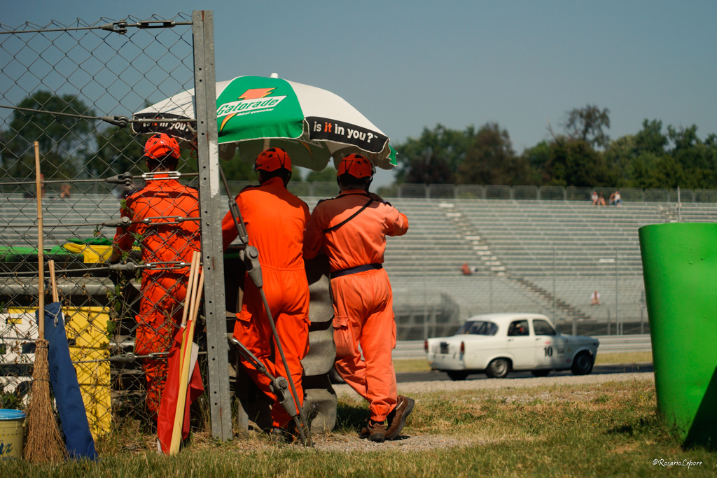 Ho tolto il verde anche a sinistra, così i commissari restano assoluti protagonisti insieme all'auto.