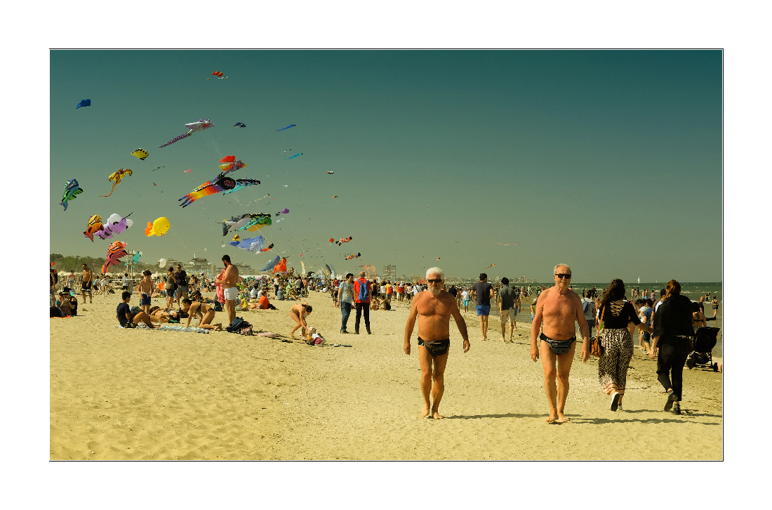Copio Mauro: troppo giallo, che va un po' riequilibrato. Tutto il resto è ok, anche la luminosità e il soggetto stesso, molto simpatico, fra aquiloni che volteggiano e bagnanti in costume e non (i fuseaux leopardati impressionano un po', ma tirava vento) .