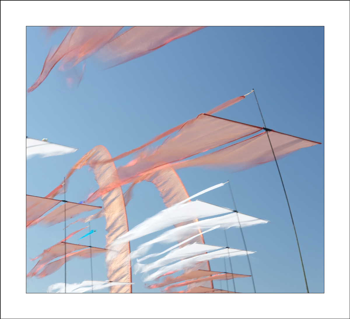 Il vengo che stira queste bandiere, i tessuti tesi, energia naturale.