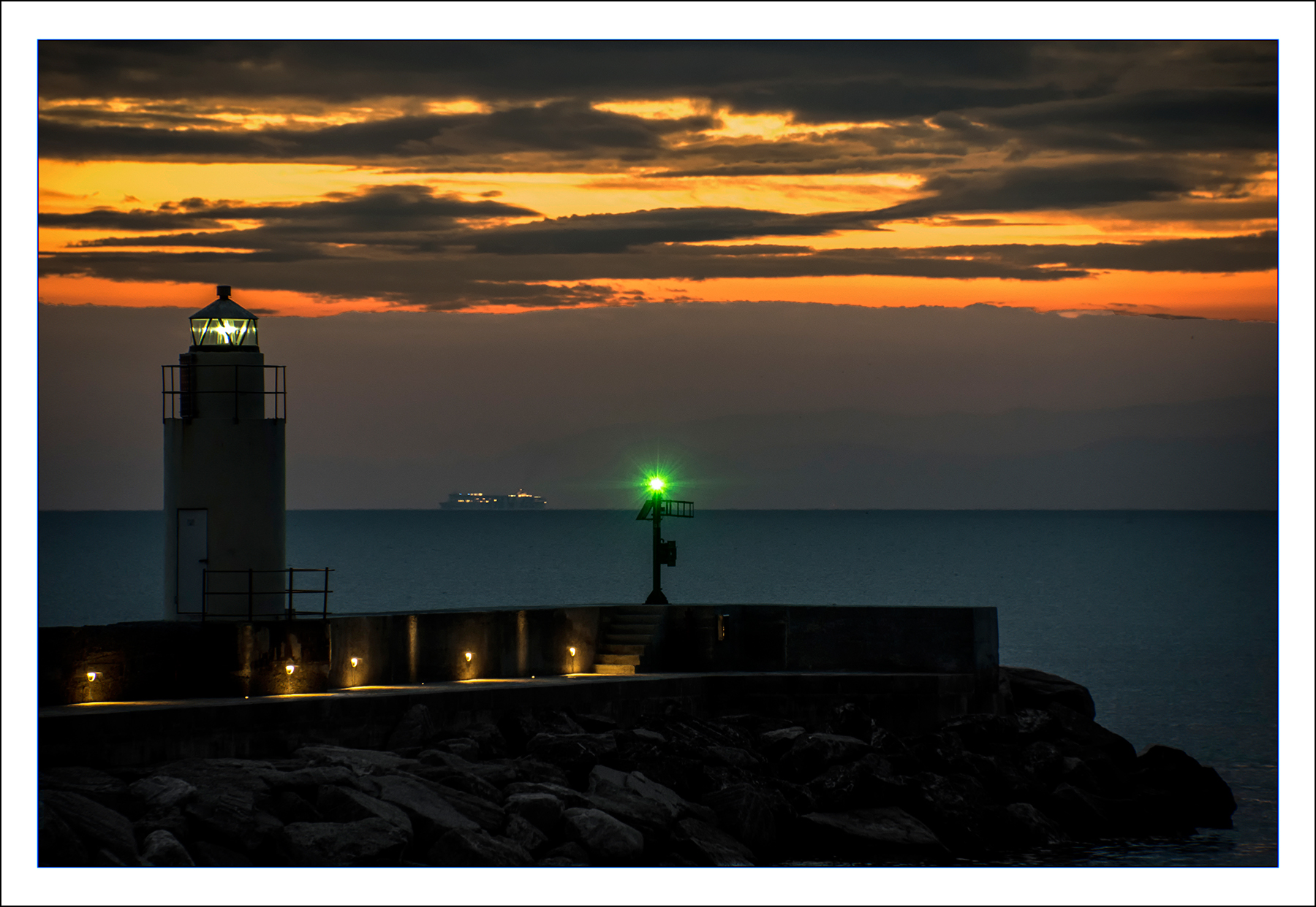 | ciao Bruno, un bellissimo tramonto, con due chicche che sono la luce verde e il faro, ottimo lavoro. ciao Marco |