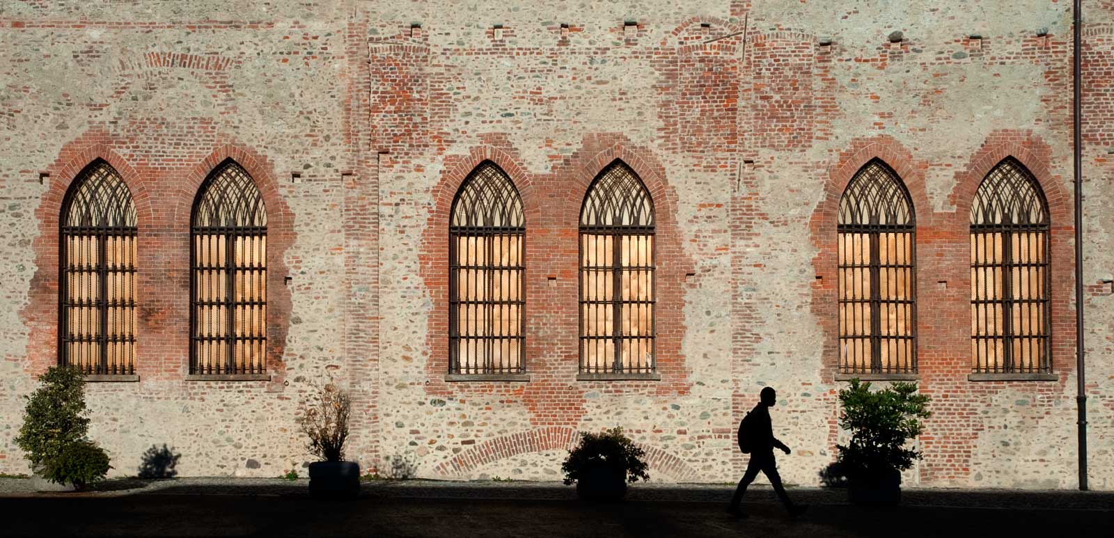 Un disteso susseguirsi di finestroni in mezzo al quale spunta la silhouette podista bel stagliata e intrigante.