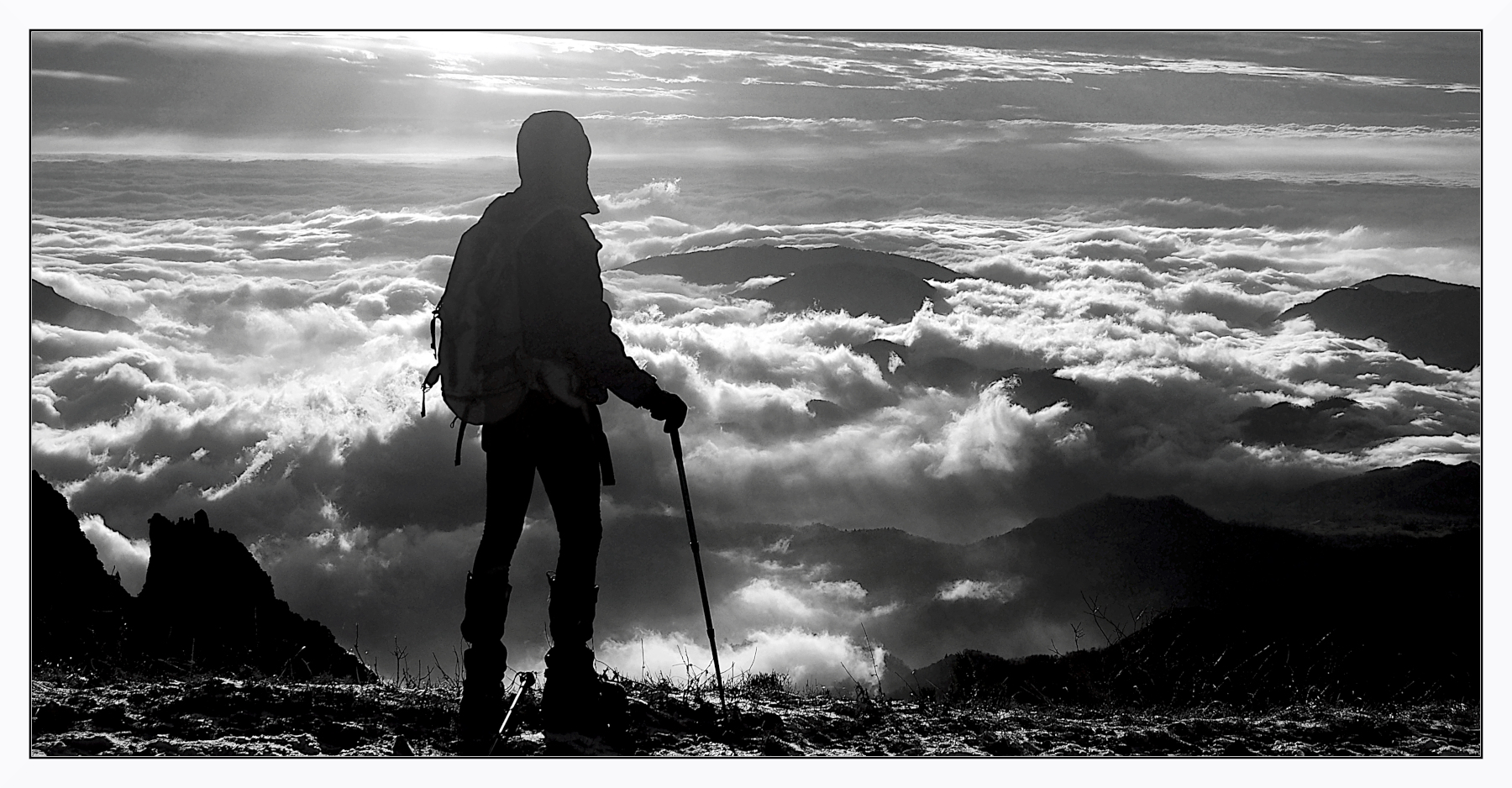 una bellissima sensazione essere arrivati in vetta e guardare il mondo dall'alto con le nubi ai nostri piedi, molto bella