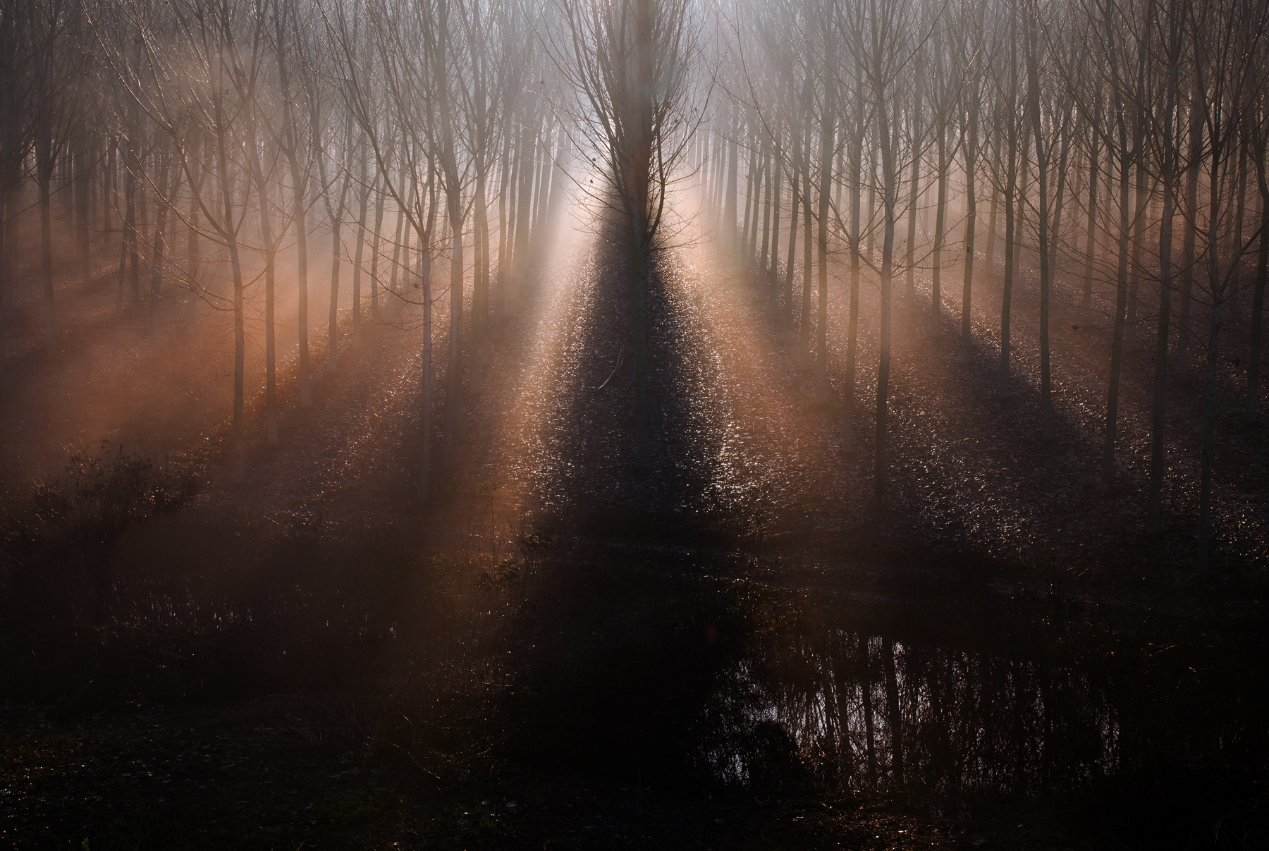 Hai colto una luce filtrante tra i filari dei pioppi di una intensità magnifica.