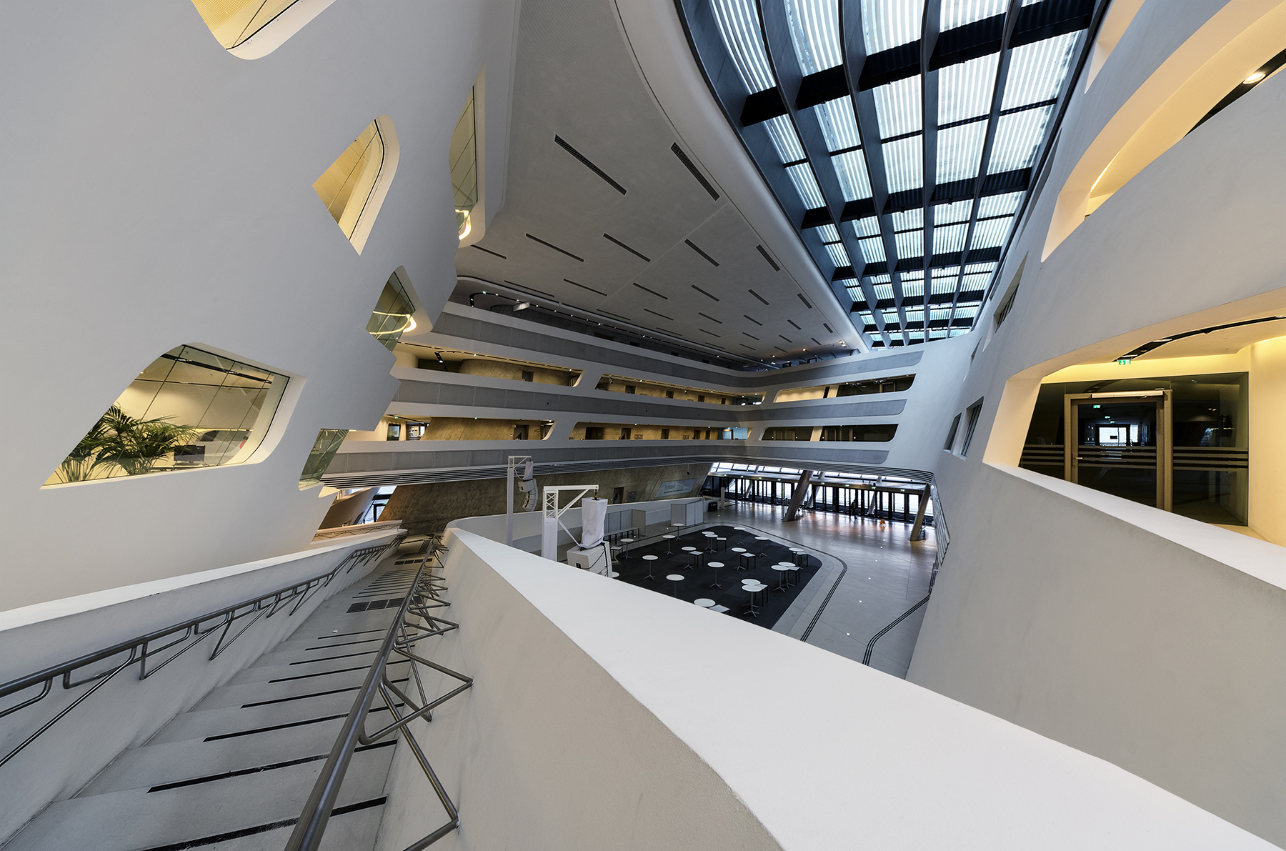 Struttura fantastica e punto di vista particolarissimo. Un trionfo di limone e diagonali da sapore fantascientifico. Le distorsioni sulla scalinata sono effettivamente ben bilanciate dalle linee del lucernario. Bellissima